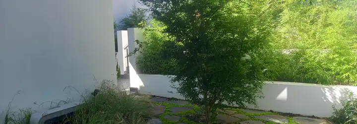 Bamboo, timber screening, vertical garden pot systems and screens provide privacy from nosy neighbours.