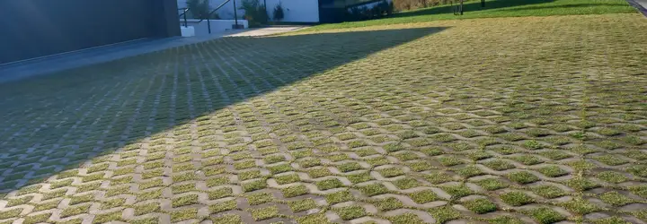 Custom designed concrete pavers and gravel paths, instant lawn,