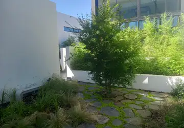 This landscaped courtyard provides a tranquil centrepiece at the heart of a home in Steyn City